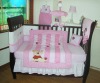 aby cribbedding set 1. Material: 100% cotton cover, 100% polyester filling 2. Contents: a) 1pcquilt 91x114cm filling200gsm b) 1pc bumper38x137cm filling 300gsm c) 1pc fitted sheet 70x130+15cm d) 1pc 30x30cm filling 120g/pc e) 1pc sleeping bag 0-6months f) 1set musical mobileh) you can choosemore pieces to combination, size can be changed as per your needing 3.Inner packing: PVC polybag